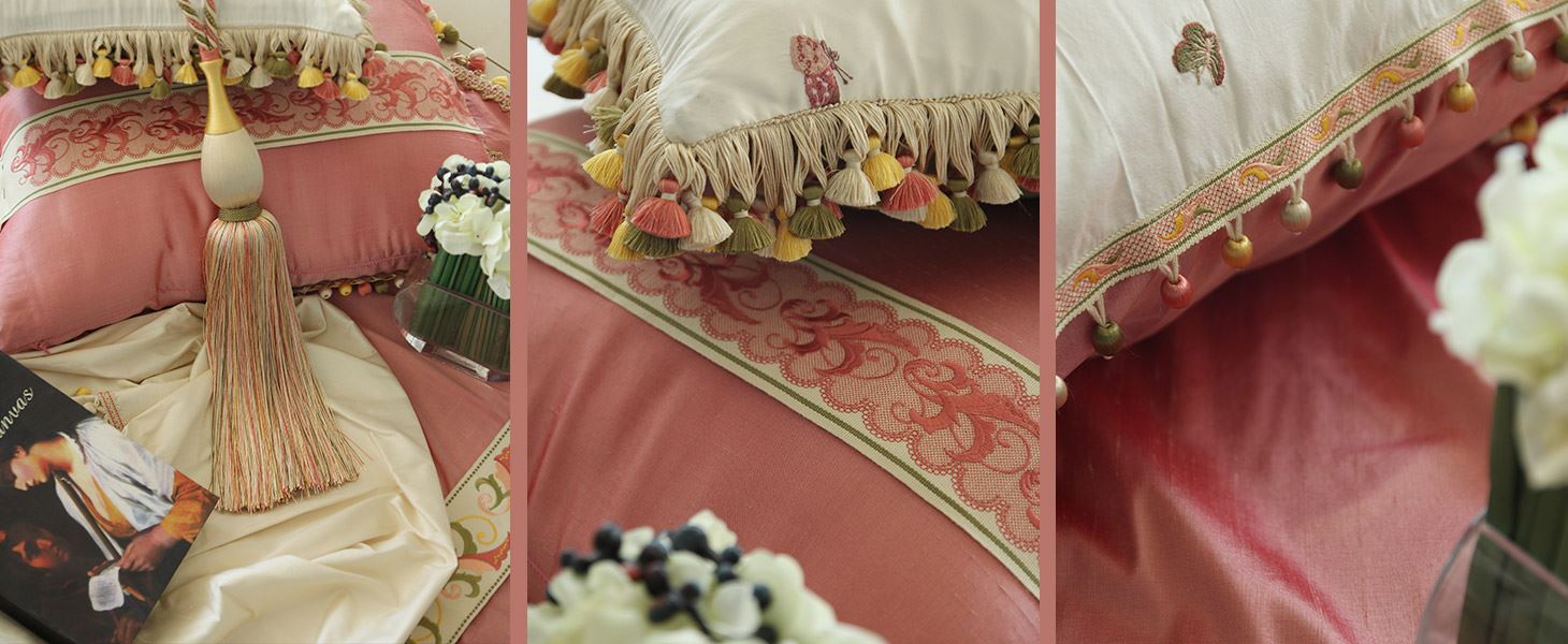 法式宮廷色調(diào),仿真絲質(zhì)感,鏤空感的蕾絲搭配帶子的細(xì)膩,用現(xiàn)代手法再現(xiàn)厚重的古典。匠心與自然,流行與永恒,搭配在臥室之中,盡顯女性的雅致與浪漫。